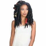 Crochet braids made of thick dread locs with a curly tip finish for a unique style