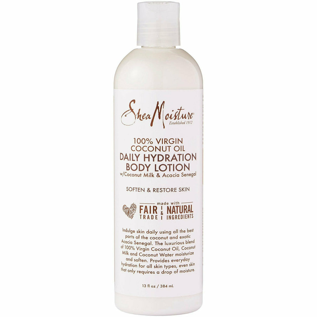 Shea Moisture100% Virgin Coconut Oil Daily Hydration Body Lotion gives your skin the indulgent daily treatment it deserves using all the best parts of the coconut and exotic Acacia Senegal. The luxurious blend of 100% Virgin Coconut Oil, Coconut Milk and Coconut water moisturize and soften. Provides everyday hydration for all skin types, even skin that only requires a drop of moisture.