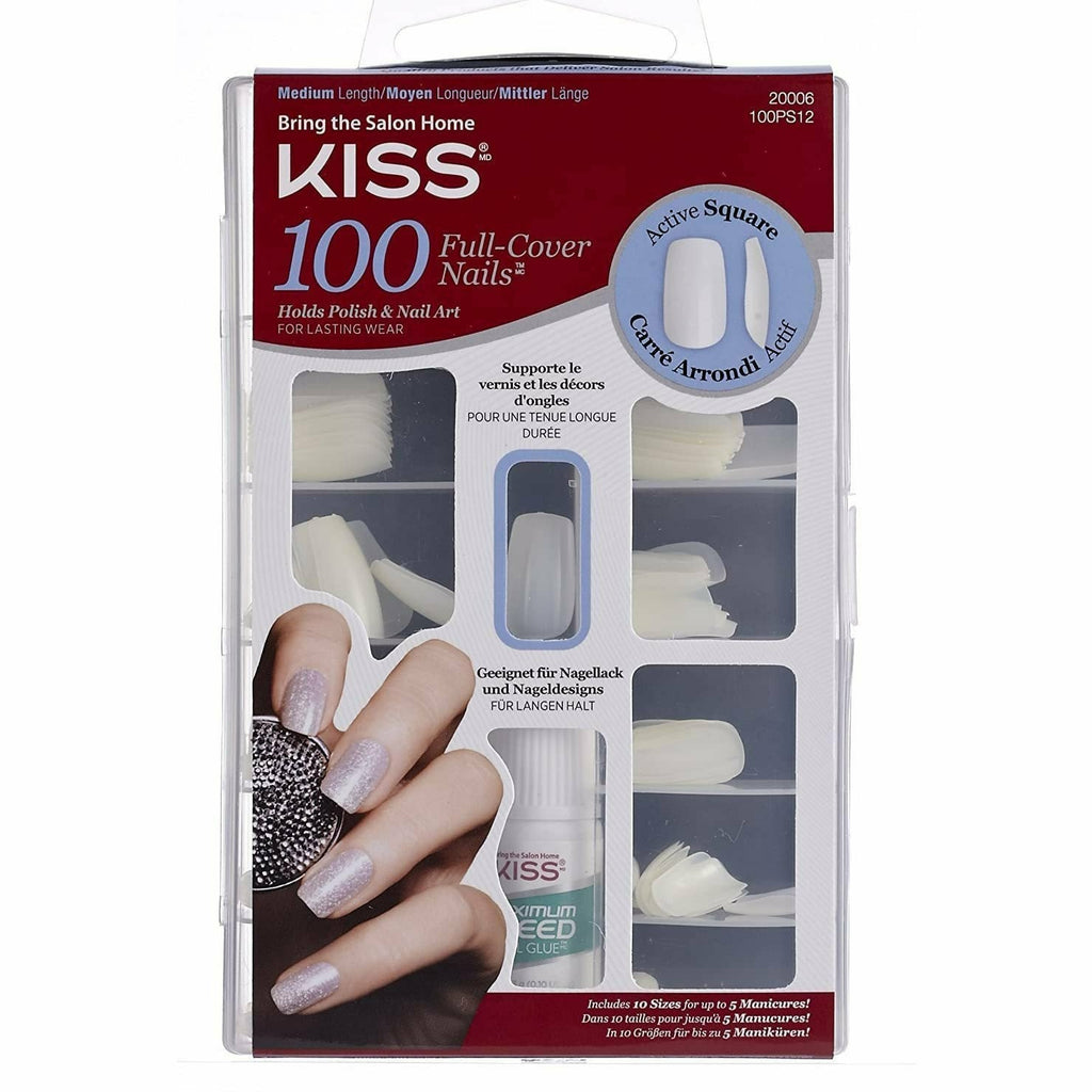 Kiss 100 Nails Active Square are full cover artificial nails are made to wear nail polish longer than natural nails without chipping. These artificial nails are available in a variety of lengths, shapes and sizes, kiss nails come with max speed, professional nail glue for a secure hold every time.