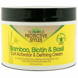 Taliah Waajid Protective Styles Bamboo, Biotin & Basil Curl Activator & Defining Cream is a lightweight curl definer that produces defined curls with minimal manipulation. Works on fine to coarse and thick hair types for longer lasting beautiful, curls with no build-up. Does not weigh down hair strands, but effectively produces defined curls with great shine. Also great for mid-week curl-refreshing and touch ups.