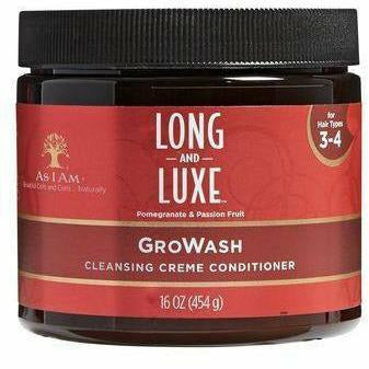 As I Am Long & Luxe GroWash is an alternative cleanser, that conditions as it gently cleanses and hydrates the hair and scalp. As I Am Long & Luxe GroWash is for type 3 and 4 hair. Long & Luxe is a growth collection for longer and stronger hair. External and Internal lab research has established the efficacy of the collection.