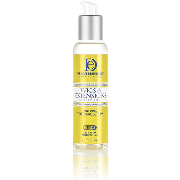 Weave and extensions need love too. Our Design Essentials® Wigs & Extensions Finishing Thermal Serum is designed to improve the beauty and wearability of your weaves and extensions when using heat styling tools like flat-irons, curlers, or wands.