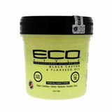 Eco Style Gel - Black Castor Flaxseed Oil helps to nourish, repair and grow hair. Wheat protein strengthens and protects hair. Like all of our styling gels, it is weightless and will leave your hair with a healthy shine and superior hold.