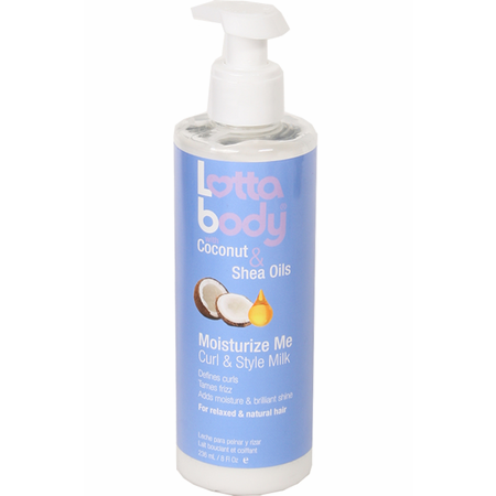 LottaBody Moisturize Me Curl and Style Mix Coconut and shea oils deeply hydrate hair from the inside out, leaving hair soft and nourished with brilliant shine. Moisturize dry, frizzy hair for springy, hydrated curls. Detangles, conditions, and controls curls while adding brilliant shine, body, and bounce.