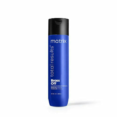 Matrix: Total Restults Brass Off Shampoo If lightening your hair was like throwing a soiree, brass would be the unwelcome, party crasher. To keep a newly-lightened hair color looking its best, reach for Matrix Total Results Brass Off Shampoo. This shampoo deposits blue-violet pigments when you wash your hair, so brassy tones are neutralized, and so you can enjoy your new color, and extend the time between salon visits, even longer.