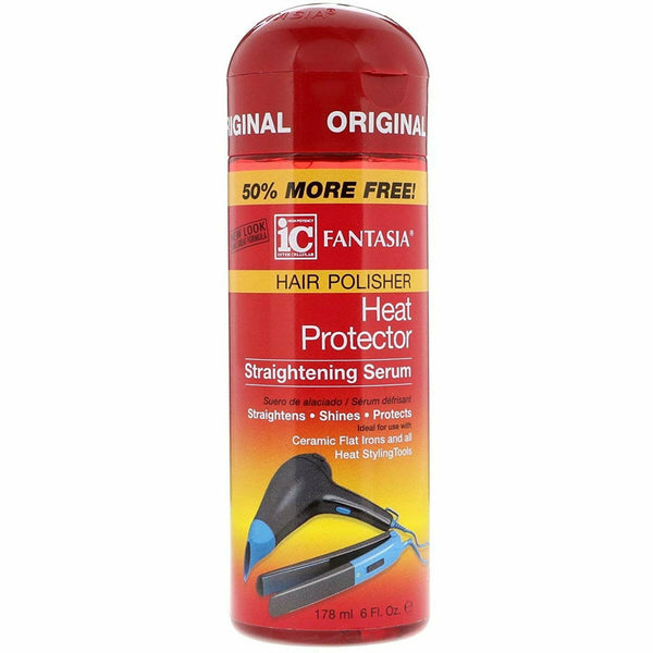 For those times when you apply heat to your hair, make sure you always protect it to prevent damage and breakage. Fantasia IC Hair Polisher - Heat Protector Straightening Serum 6oz creates a barrier between heat appliances and your hair so you can style it without the fear of causing serious damage. It will add shine to your hair and moisturize it without leaving a greasy residue and heavy build up. Keep this serum next to your favorite heat styling appliance.