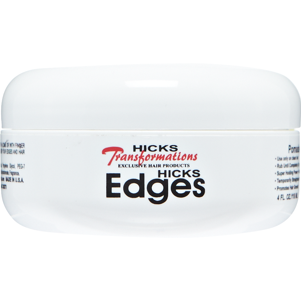 Hicks Total Transformations Hicks Edges holds hair firmly in place with a super shine and without flakiness. Leaves edges looking and feeling shinier and healthier than before. This genuine hair pomade is non-flaky and non-sticky and rinses out easily.