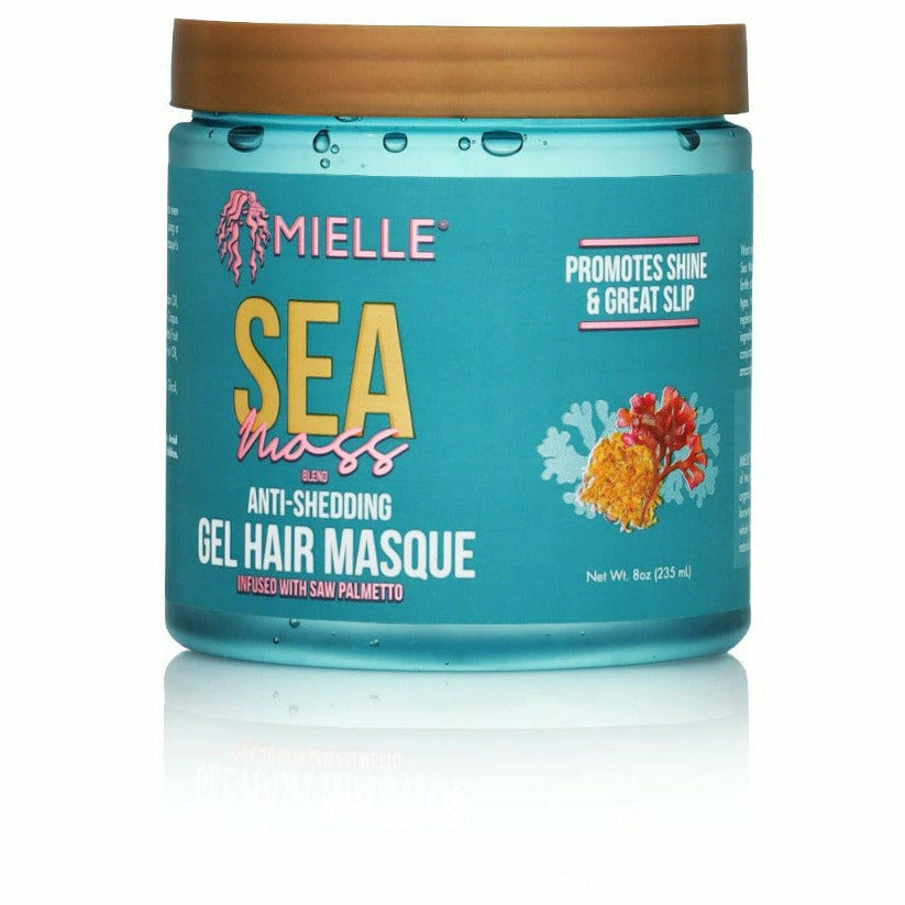Sea Moss Anti-Shedding Gel Hair Masque infused with Saw Palmetto This lightweight gel masque infuses brittle strands with intense hydration to restore health and strength. Safe for all hair types, this nutritive formula will deep condition and envelope each strand while replenishing moisture. Sea Moss Gel Hair Masque contains ingredients that help promote healthier hair. Use in conjunction with our other Sea Moss products for hair that will look and feel amazing!