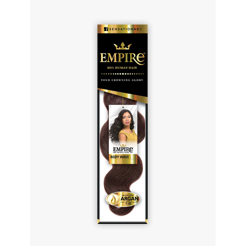 For Hair That’s Stunningly Soft and Smooth, Crown Yourself with Argan Oil Infused EMPIRE® – 100% Human Hair from Sensationnel®. Argan Oil protects against the heat of hair dryers, curling irons and flat irons; tames frizz and flyaway, all the while maintaining a healthy shine