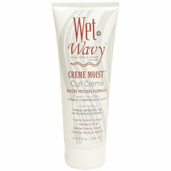Wet-n-Wavy Creme Moist Curl Creme was blended with a rich moisturizing formula to help provide smoothness for either defined curls or flowing waves, even in high humidity. Creme Moist Curl Creme is a light non-greasy creme designed to protect, condition, and restore natural moisture balance to your curly or wavy hair textures.